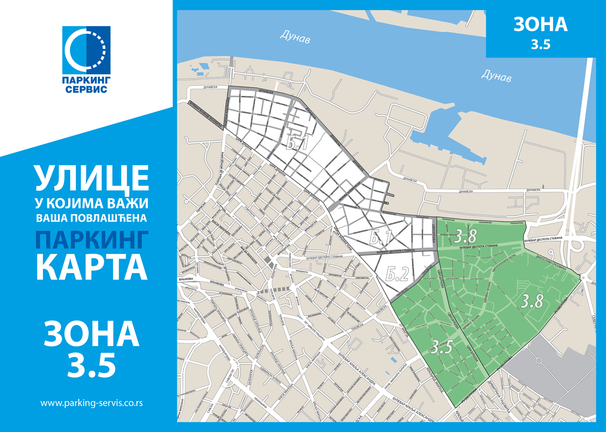 Owners of privileged parking tickets for 3.5 zone can park their vehicles in this zone and the zone B.1, B.2 and 3.8 as well, without a charge and a time limit.