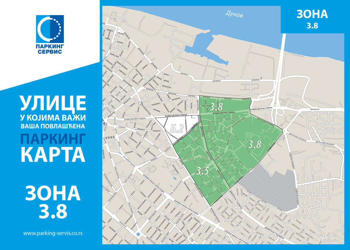 Owners of privileged parking tickets for 3.8 zone can park their vehicles in this zone and B.2 and 3.5 zones as well, without a charge and a time limit.