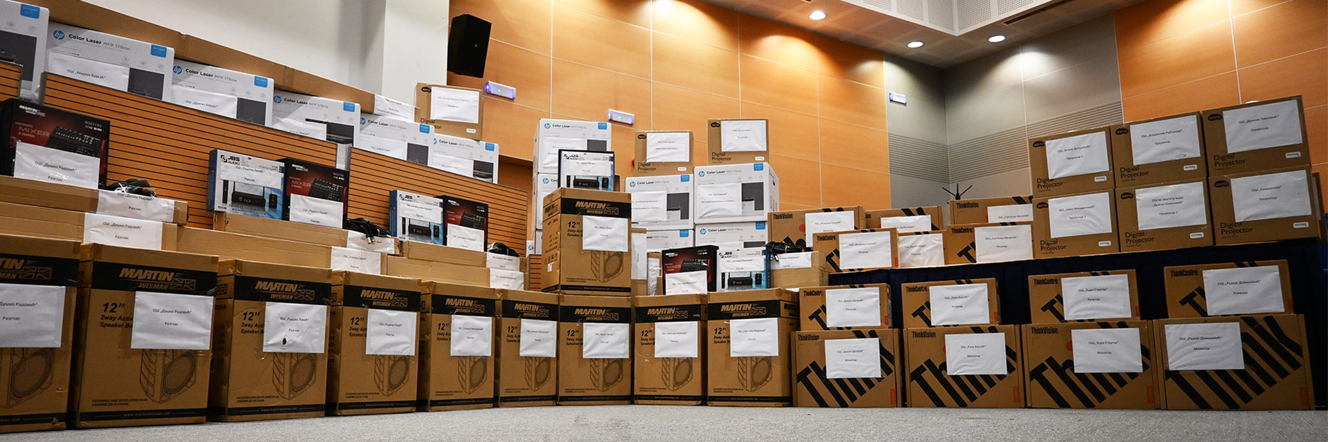 The principals selected the items, and this year, 35 schools and their students received 9 interactive whiteboards, 16 projectors, 16 multifunctional printers, 7 computers with monitors, 7 sound systems, and 1 video projector.